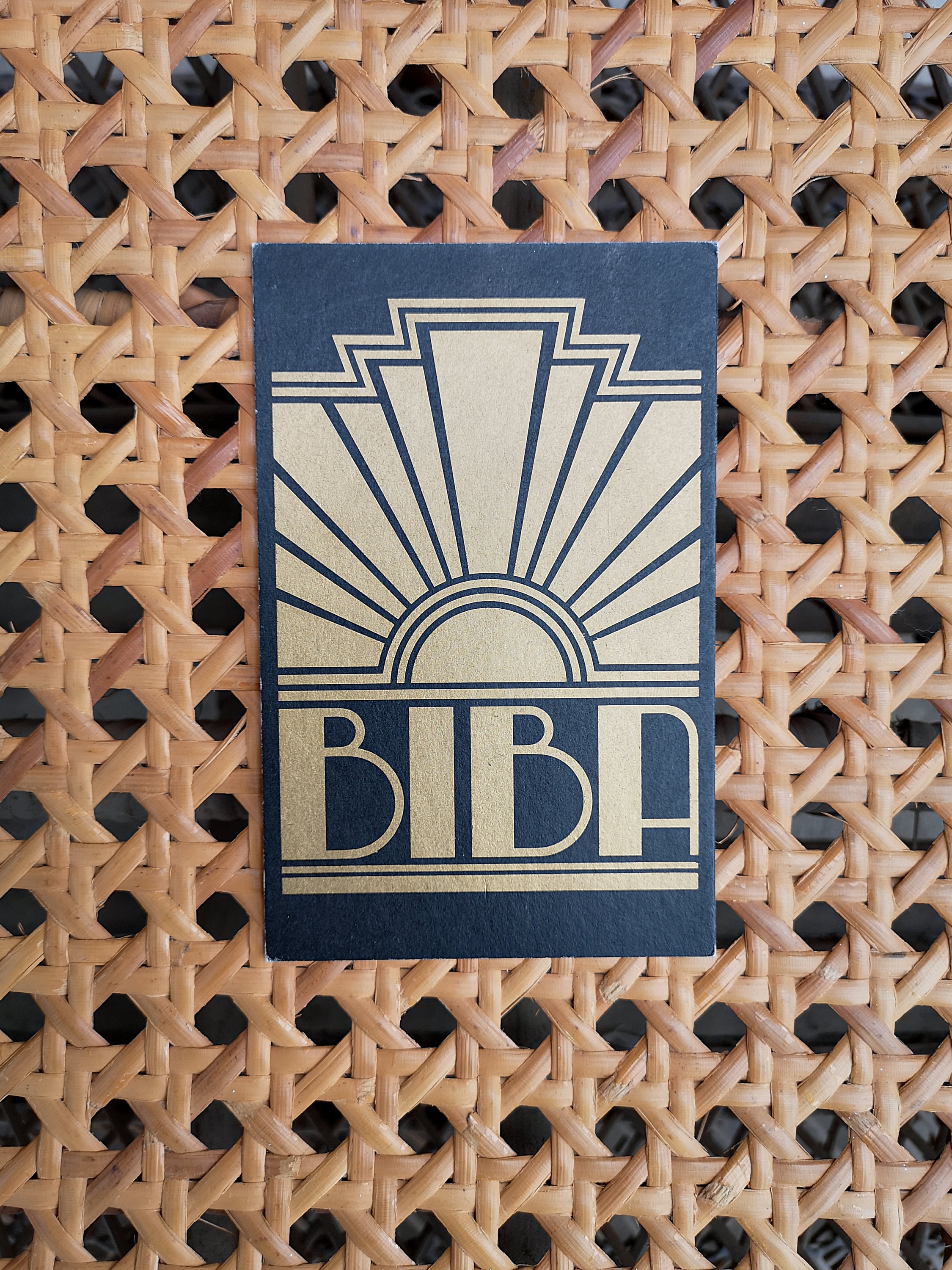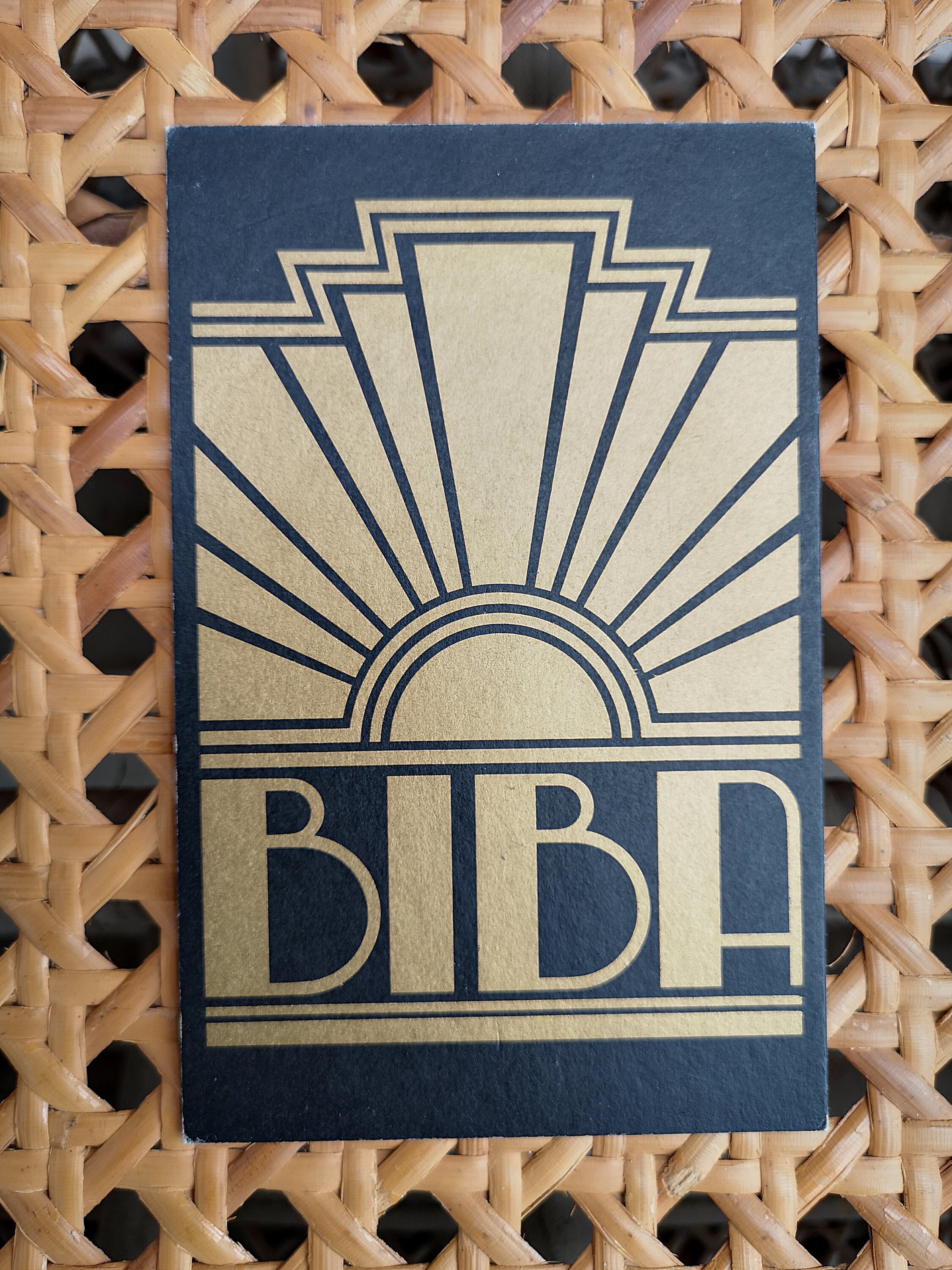 They were sold through the logo counter in Big Biba and could be brought with any of the Biba logos on the front. It features the logo to the front with the reverse blank and the word Postcard at the top in deco font with space on the right to write the address and fix a stamp in the corner too.