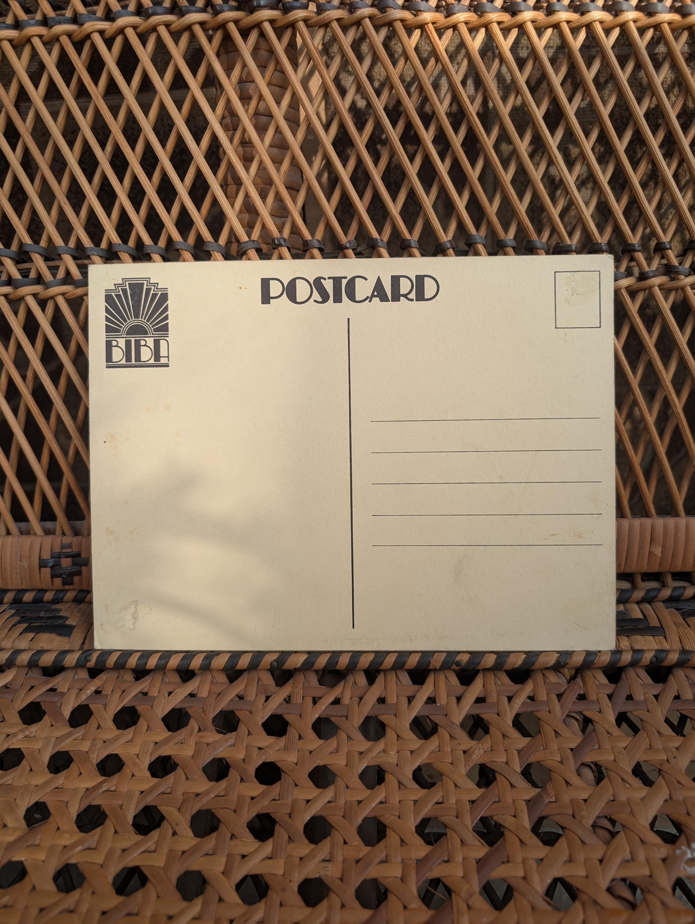 They were sold through the logo counter in Big Biba and could be brought with any of the Biba logos on the front or art work from different movies. The reverse is blank and the word Postcard at the top in deco font with space on the right to write the address and fix a stamp in the corner too, Sunday logo in the top left corner.