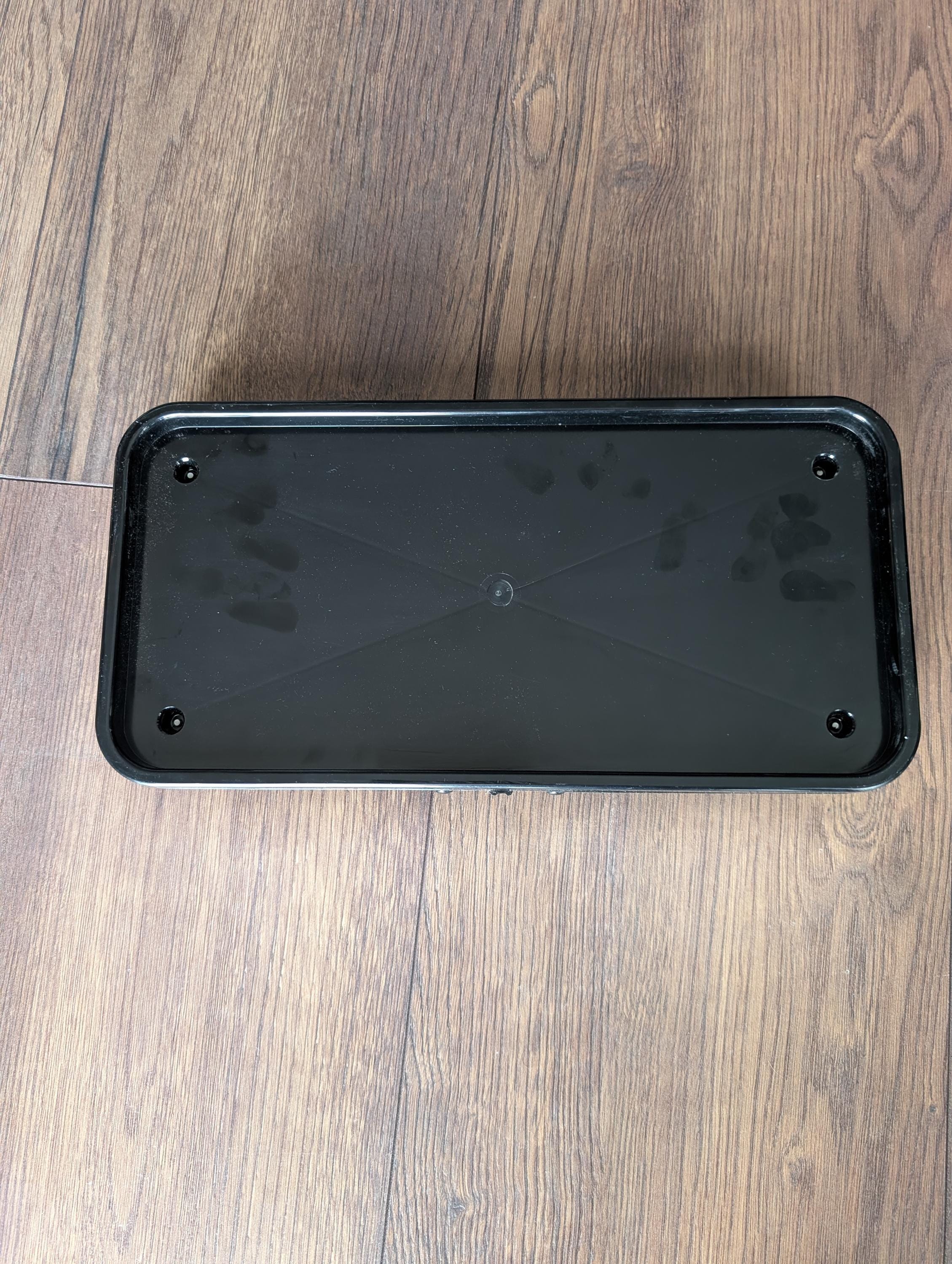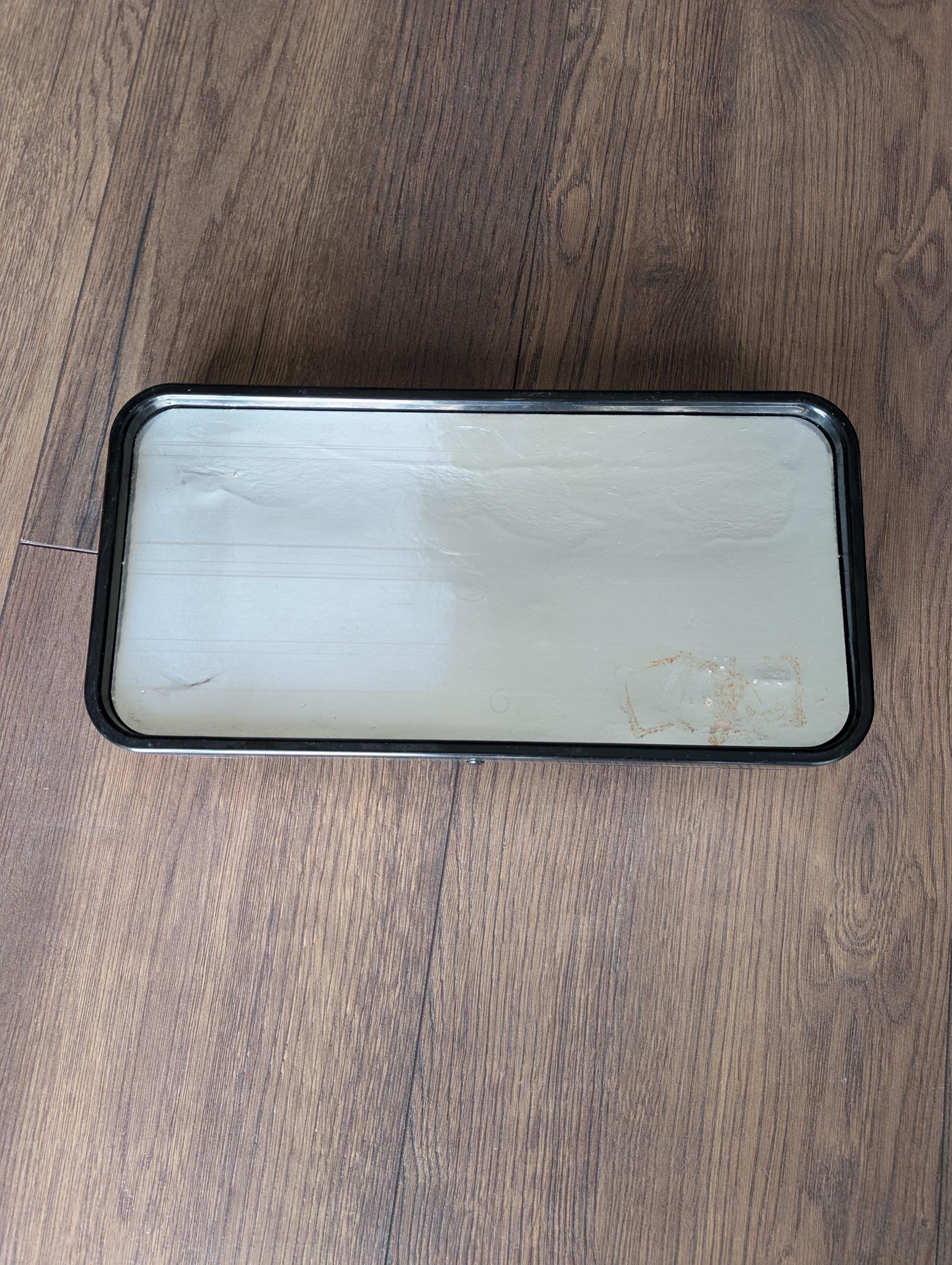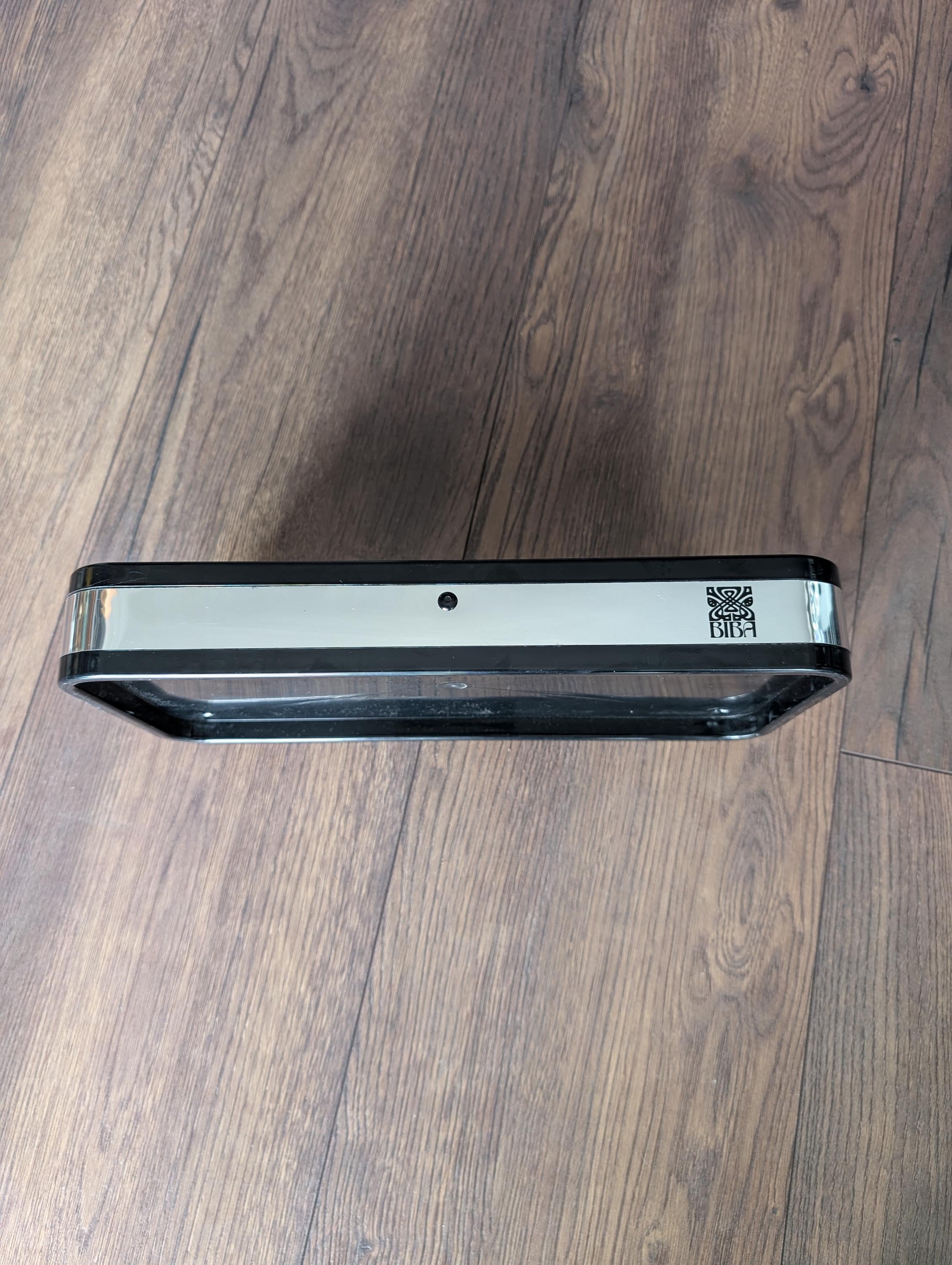 Made if thick black plastic if has a silver wrap around the edge with the Biba name and logo stamped on the front corner. The lid is dipped so makeup stands inside easily, they also used to have different moulded tray liners for eye shadows, lipsticks etc.