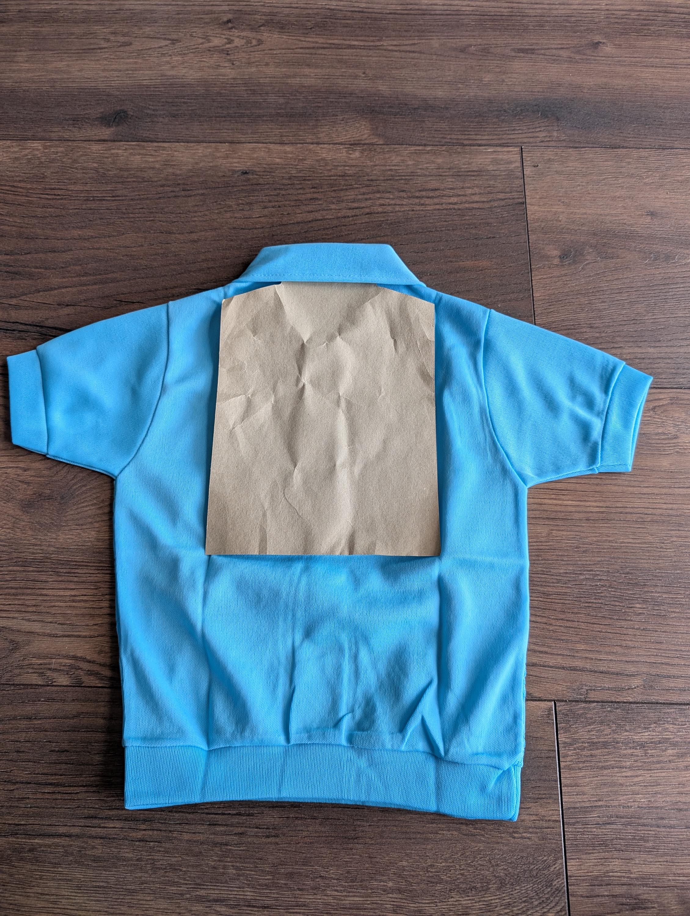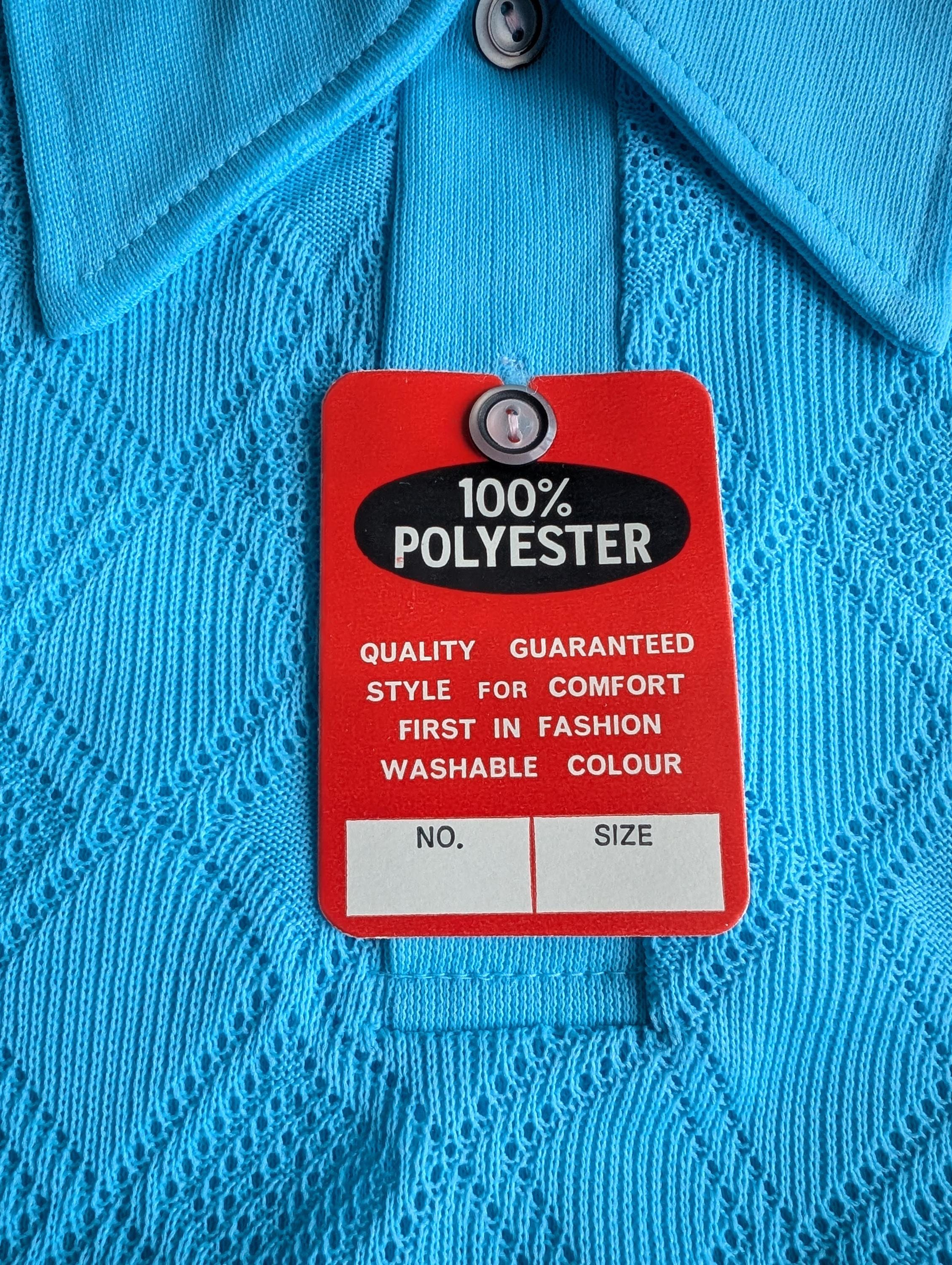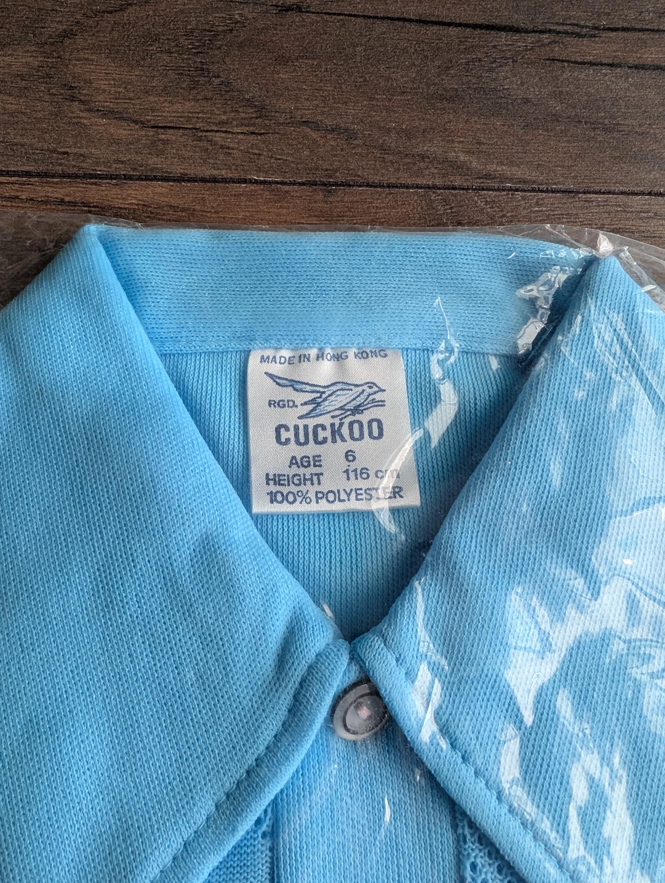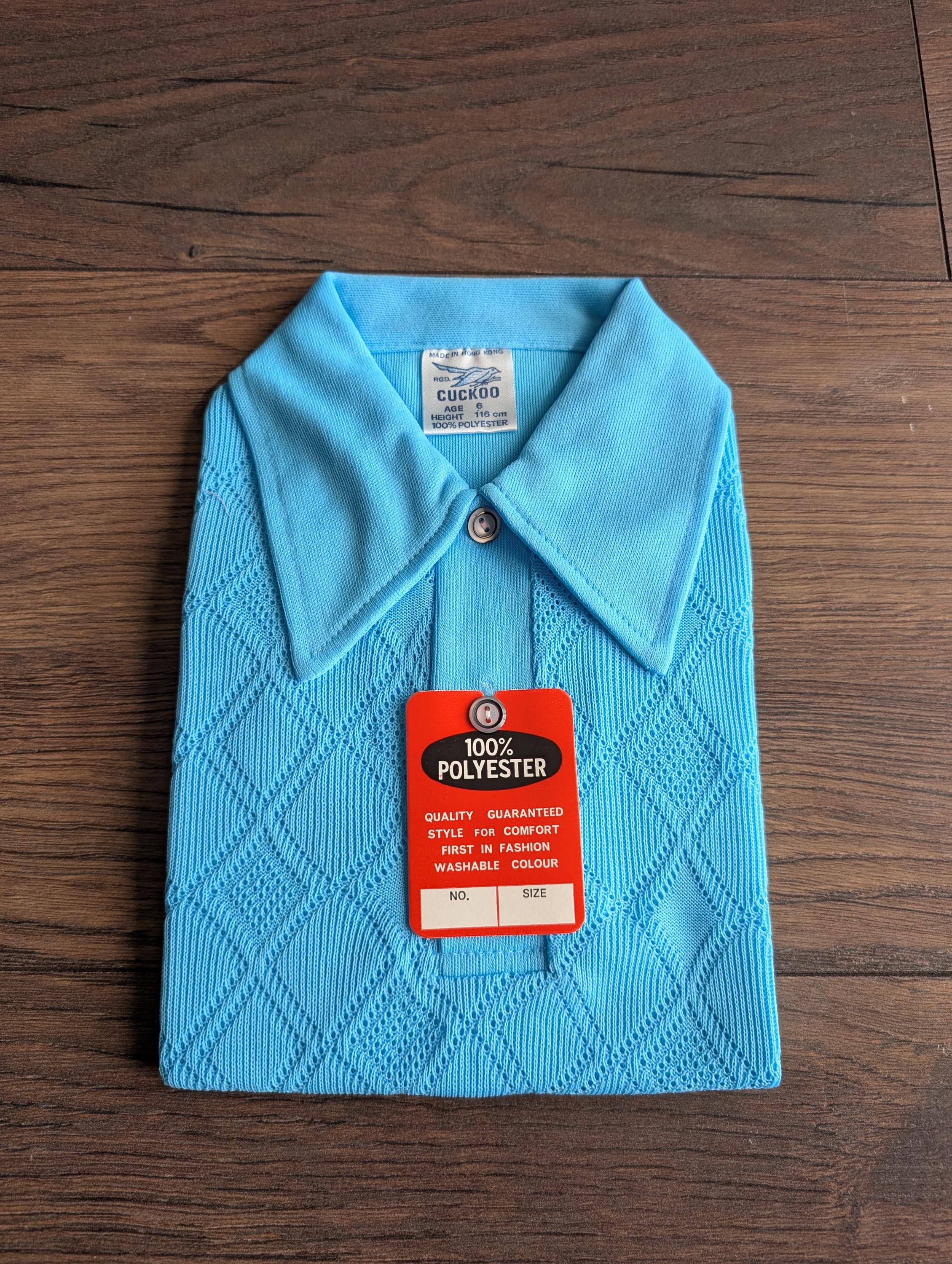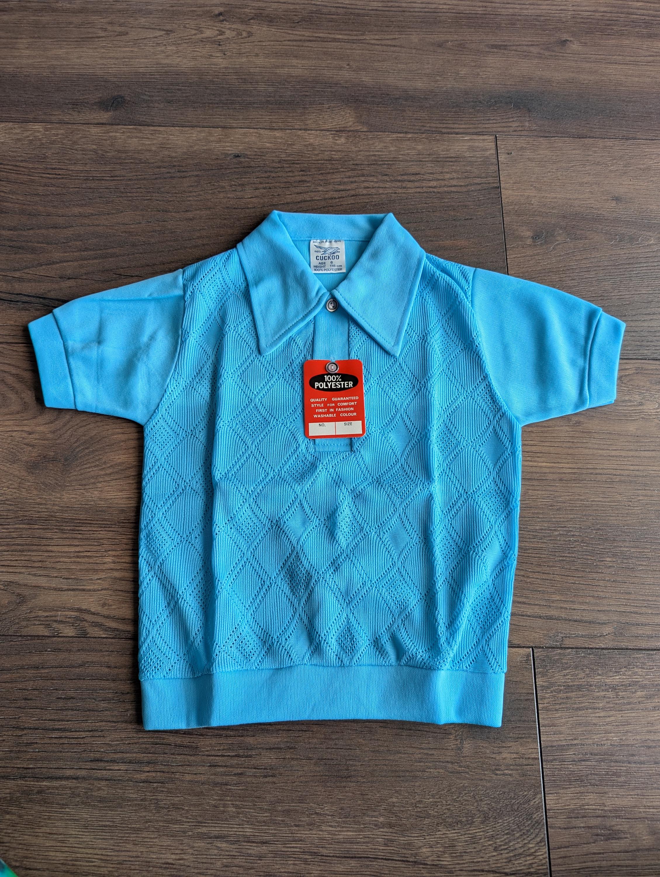 Deadstock 1970's Cuckoo Boys Baby Blue Summer Polyester Waffle Shirts ( Age 6 )