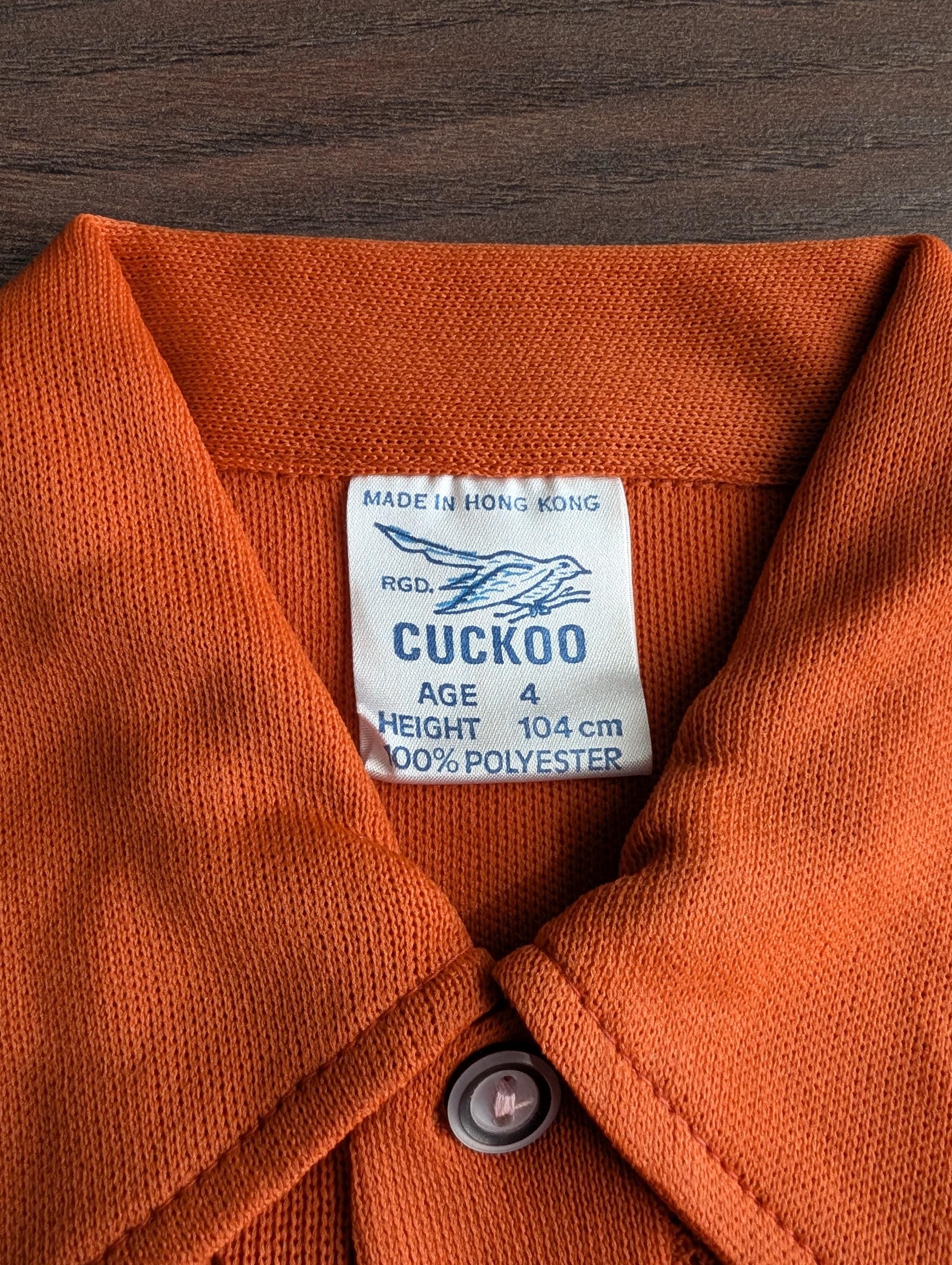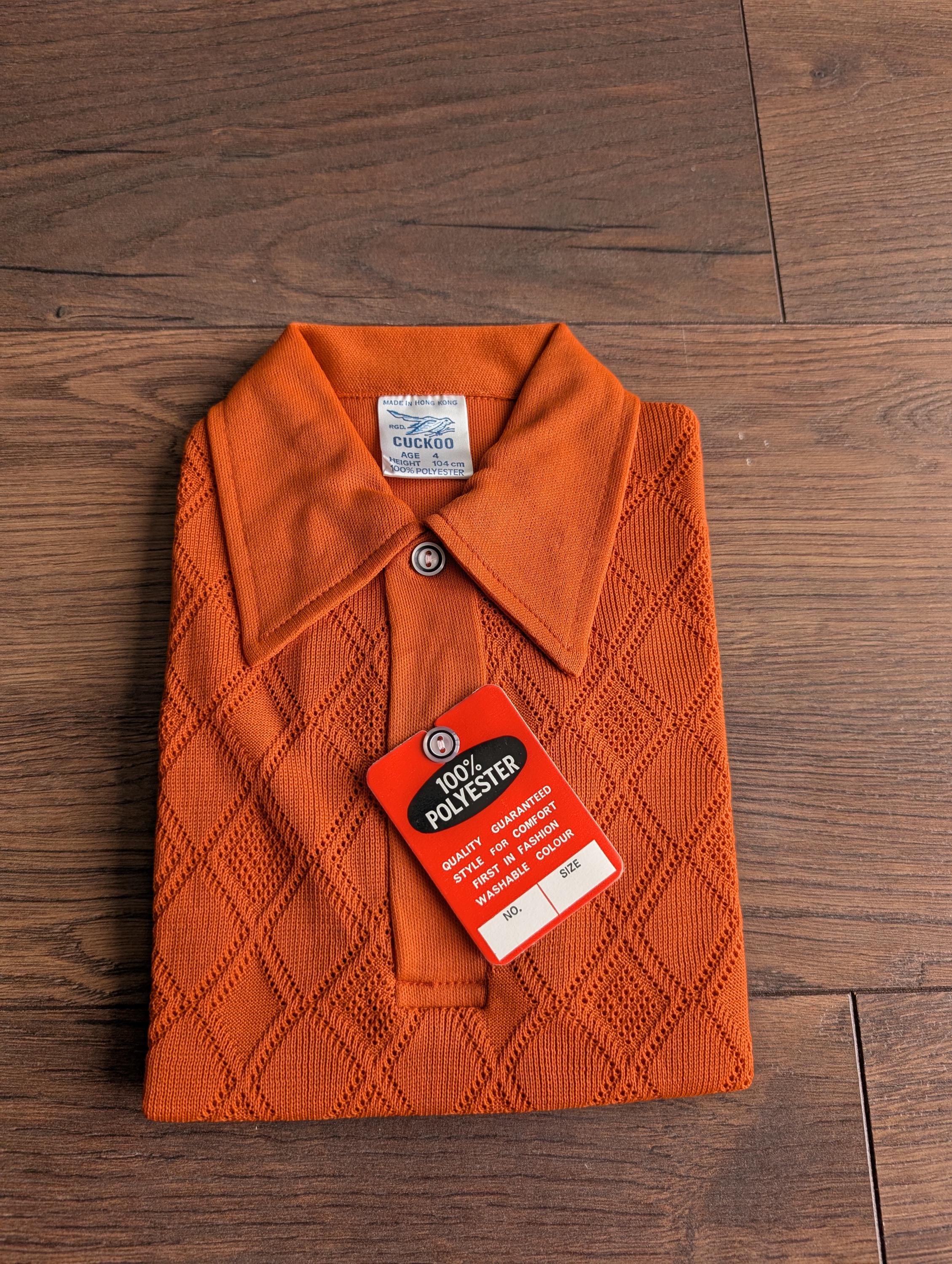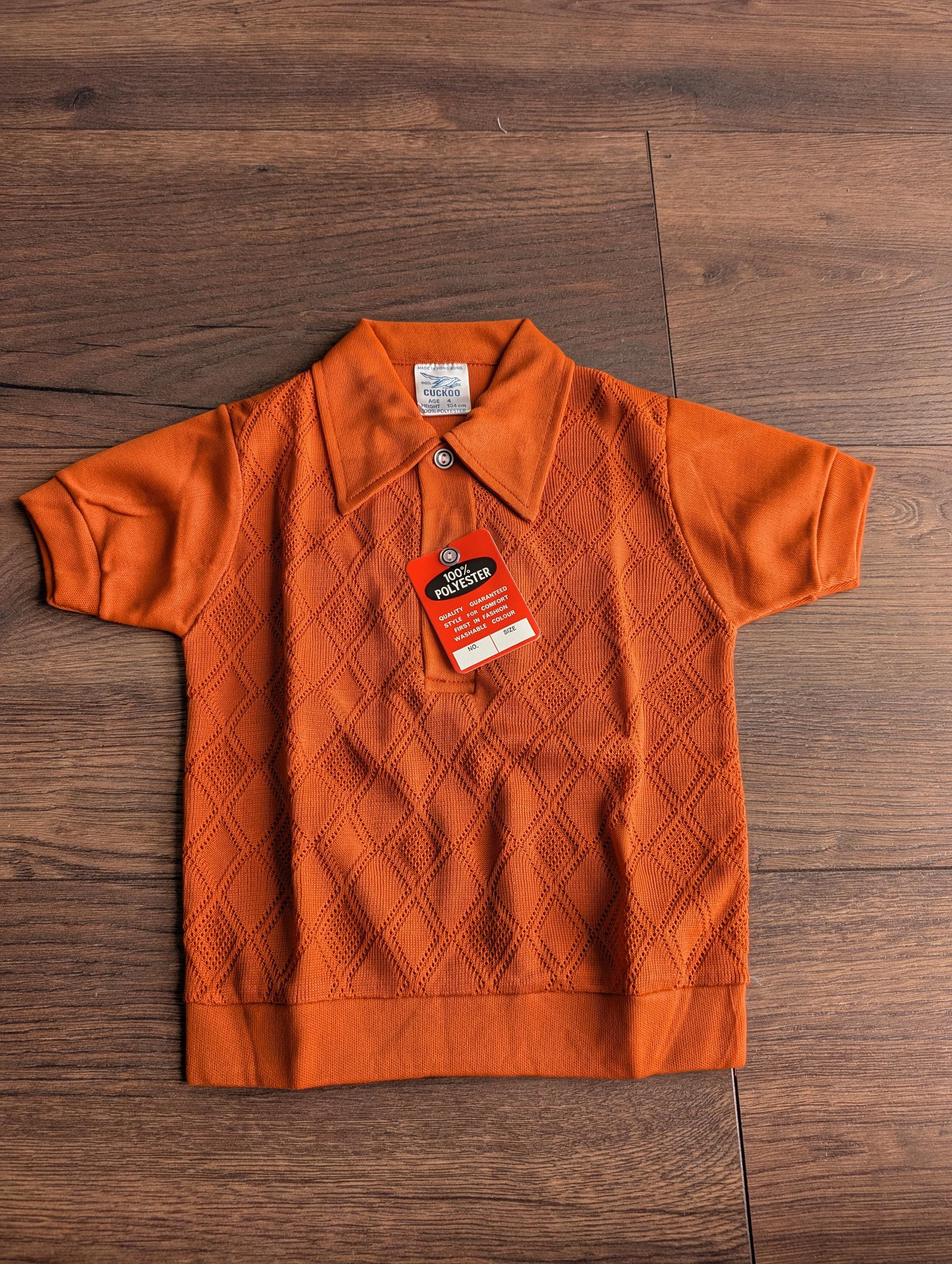 Deadstock 1970's Cuckoo Deep Orange / Brown Summer Polyester Waffle Shirts ( Age 4 )