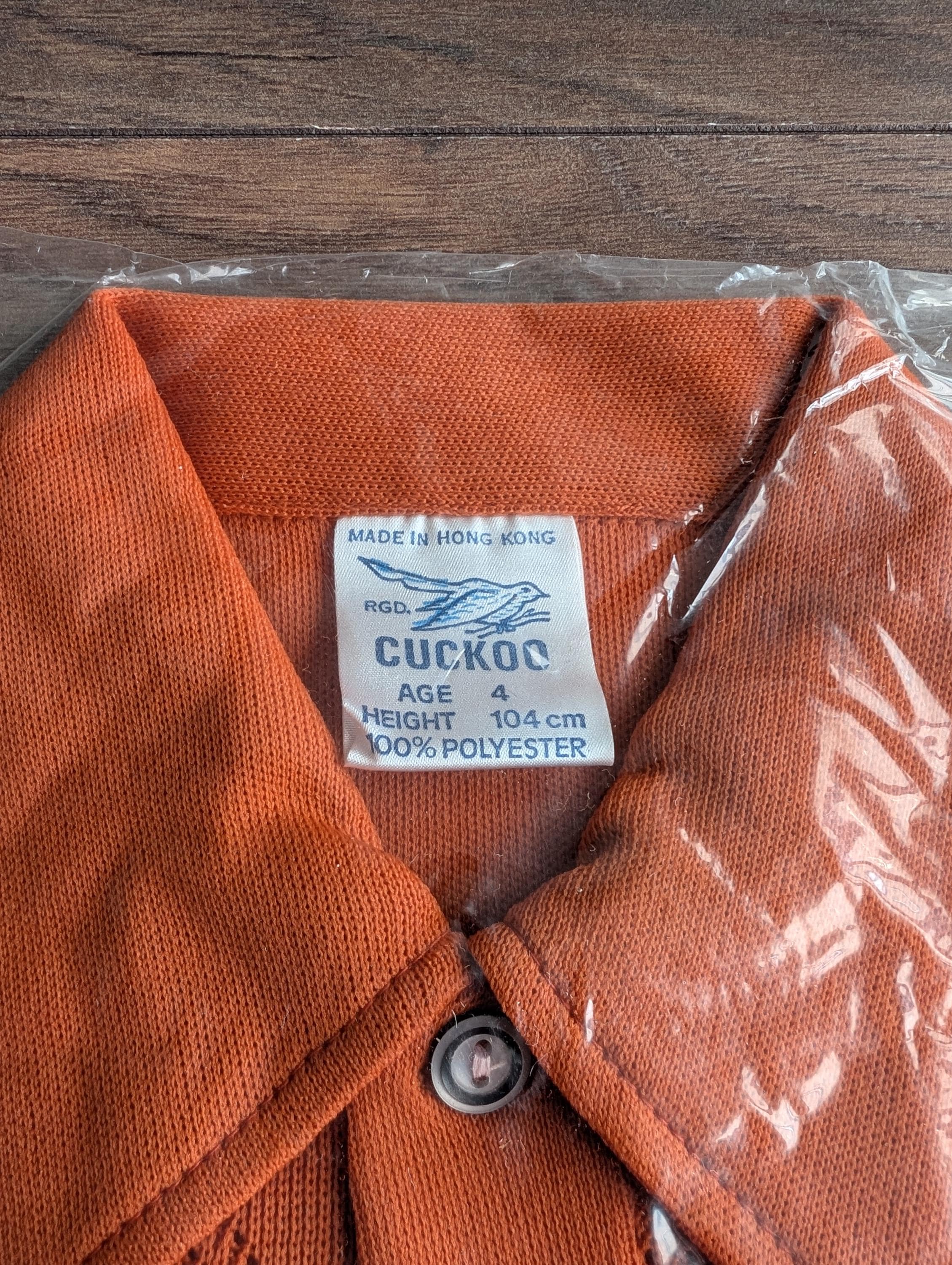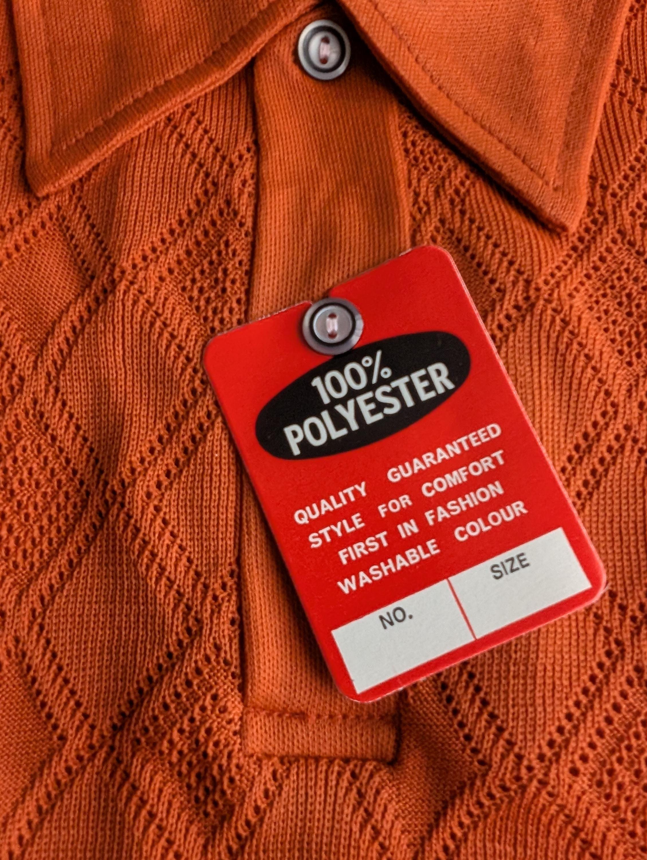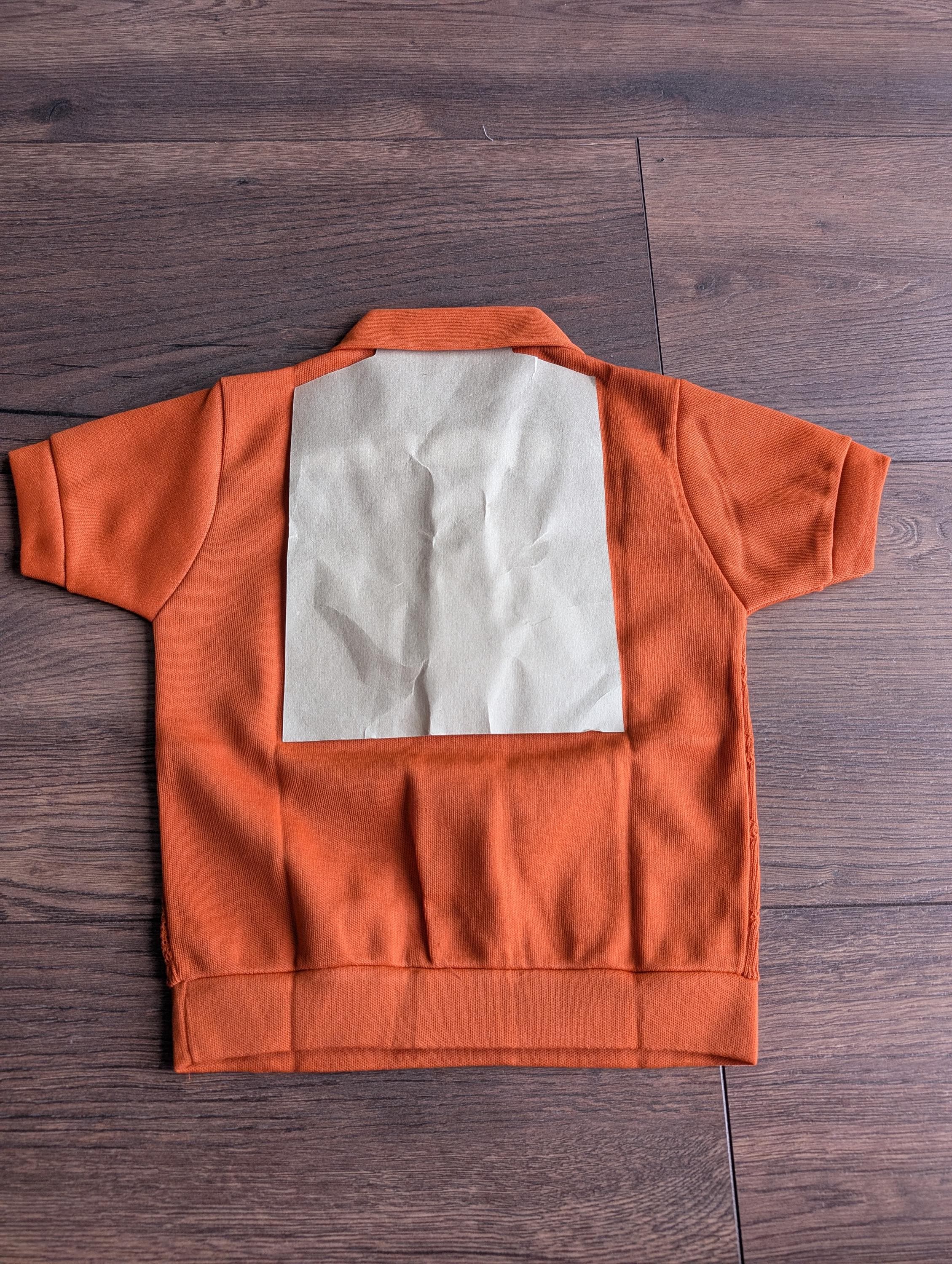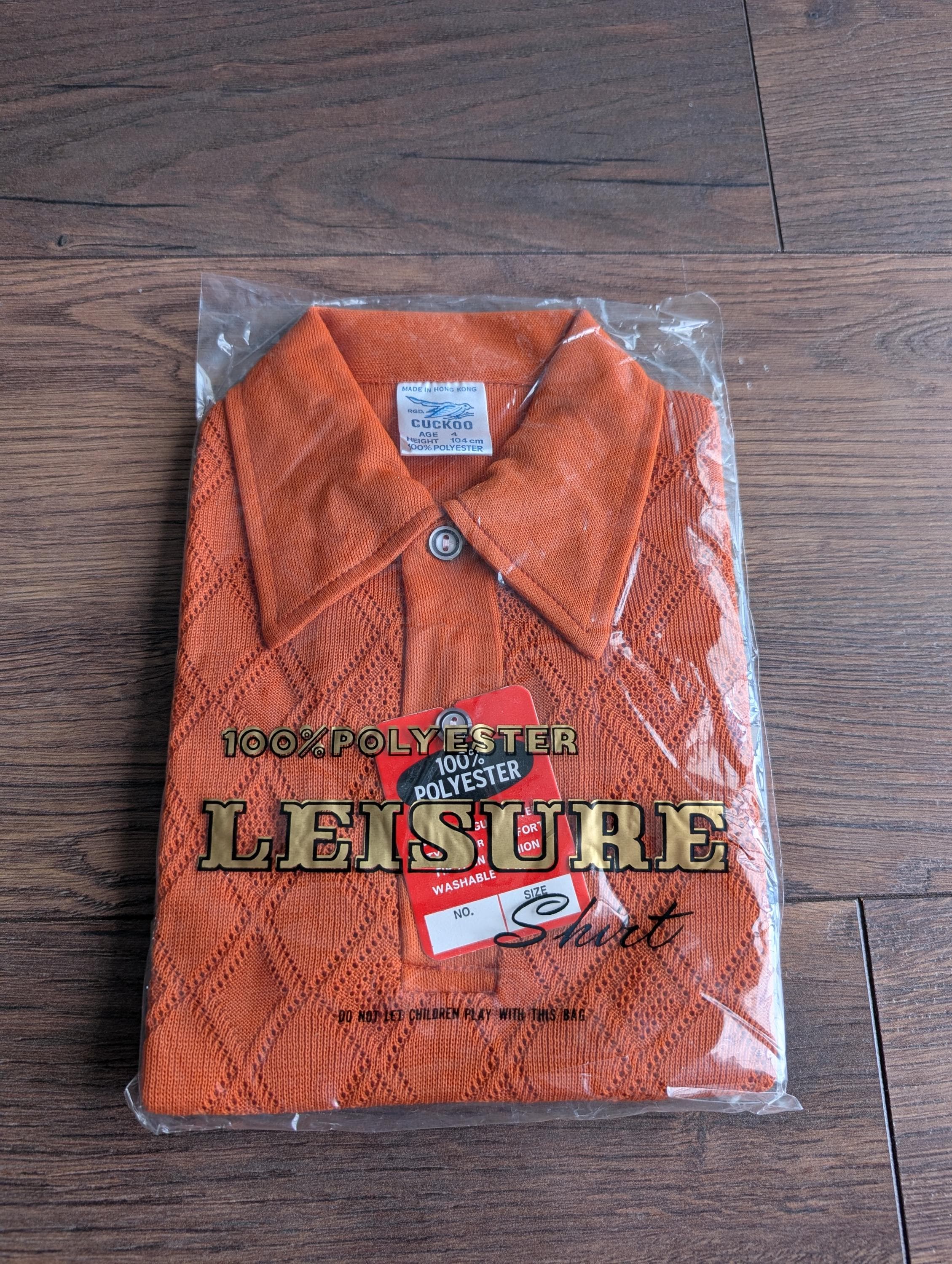 Deadstock 1970's Cuckoo Deep Orange / Brown Summer Polyester Waffle Shirts ( Age 4 )