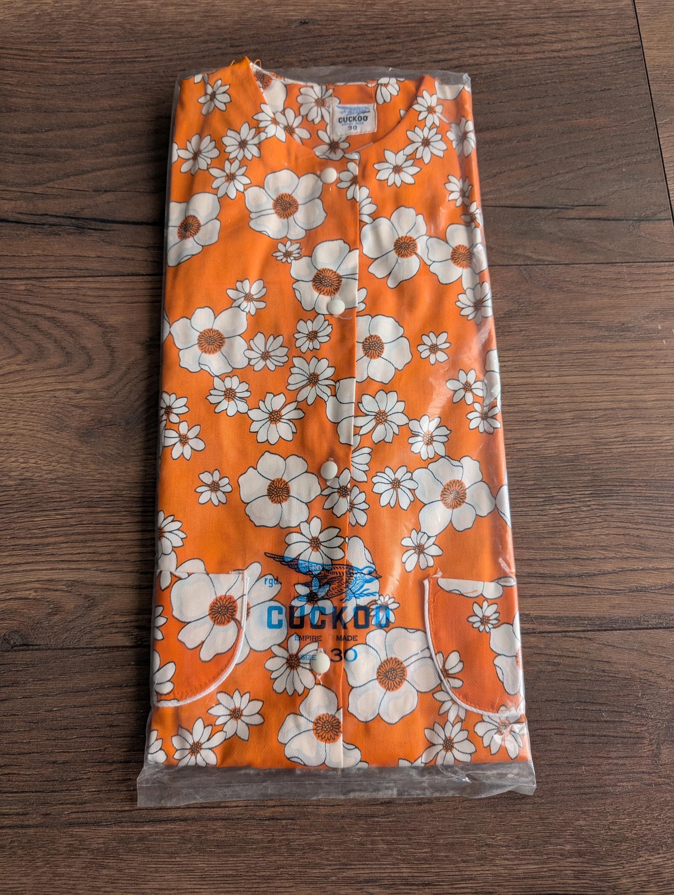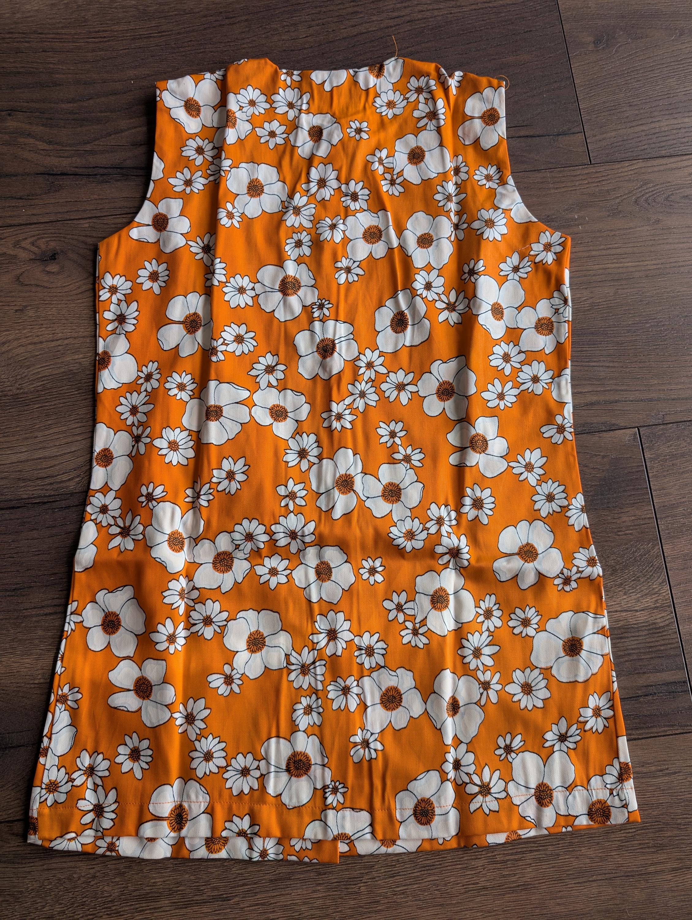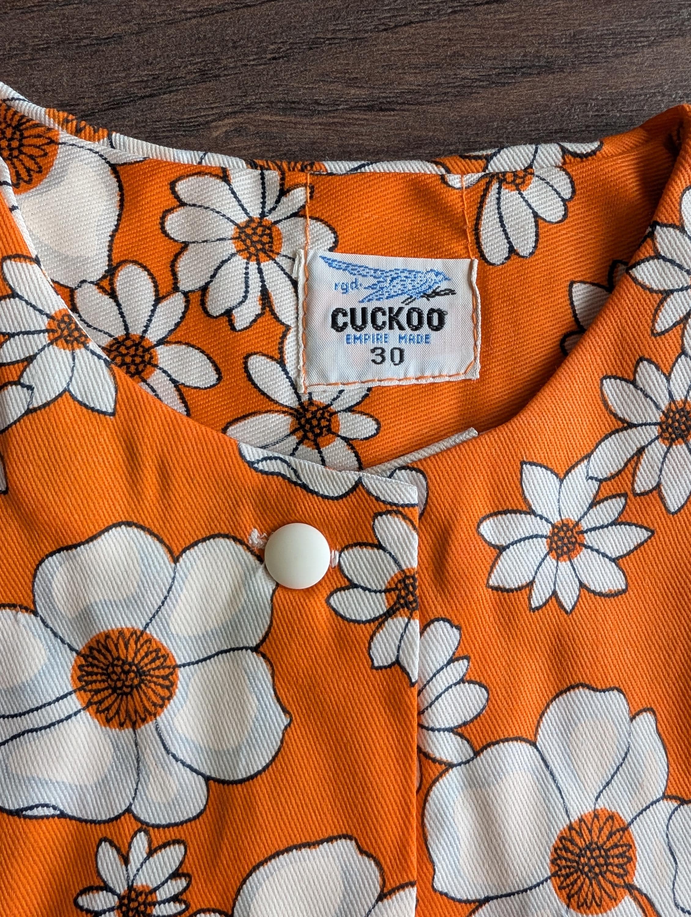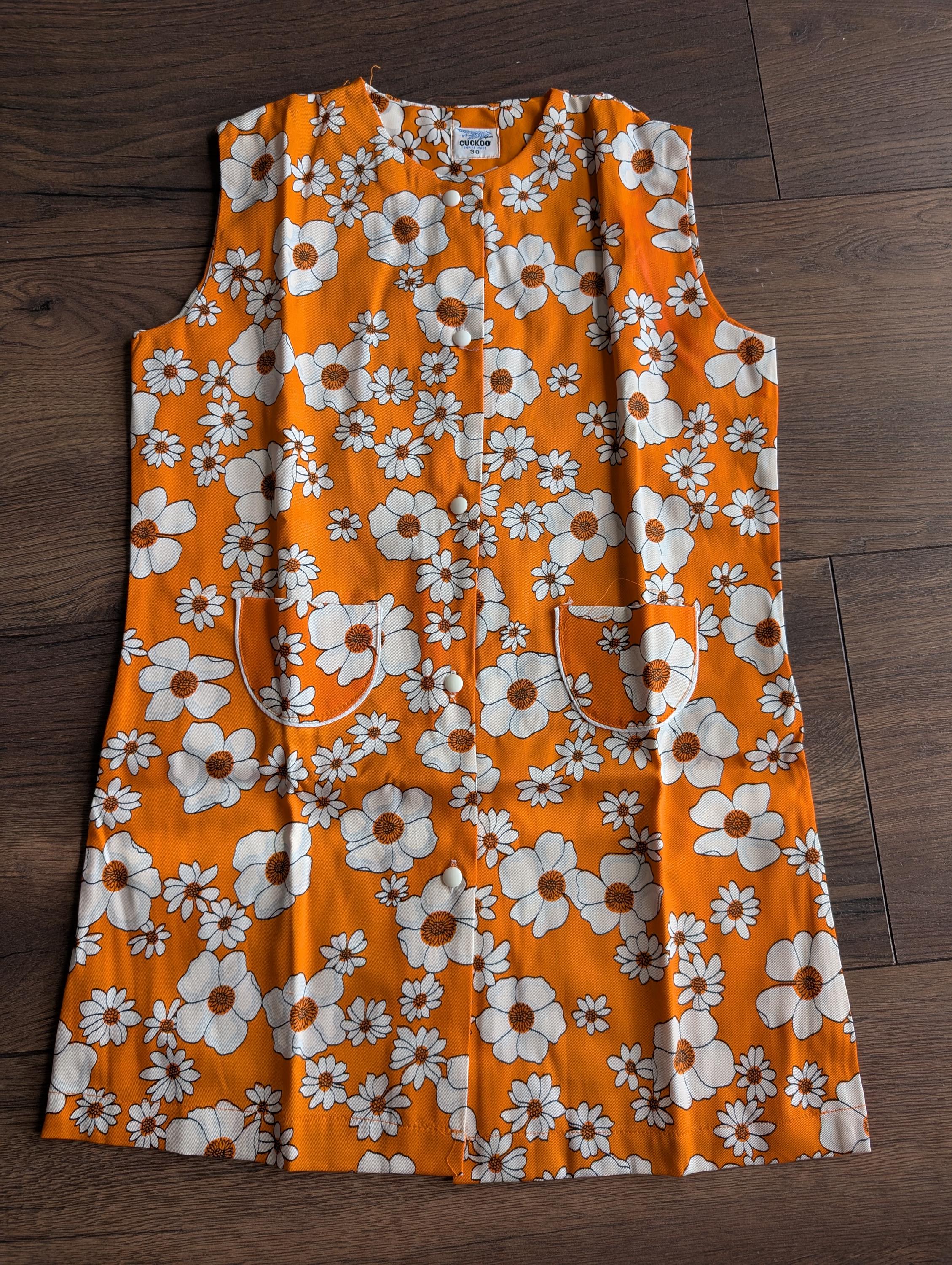 Original Cuckoo deadstock floral design two piece featuring a sleeveless button down front top with two pockets to the front and an elasticated waist pair of bell-bottoms.