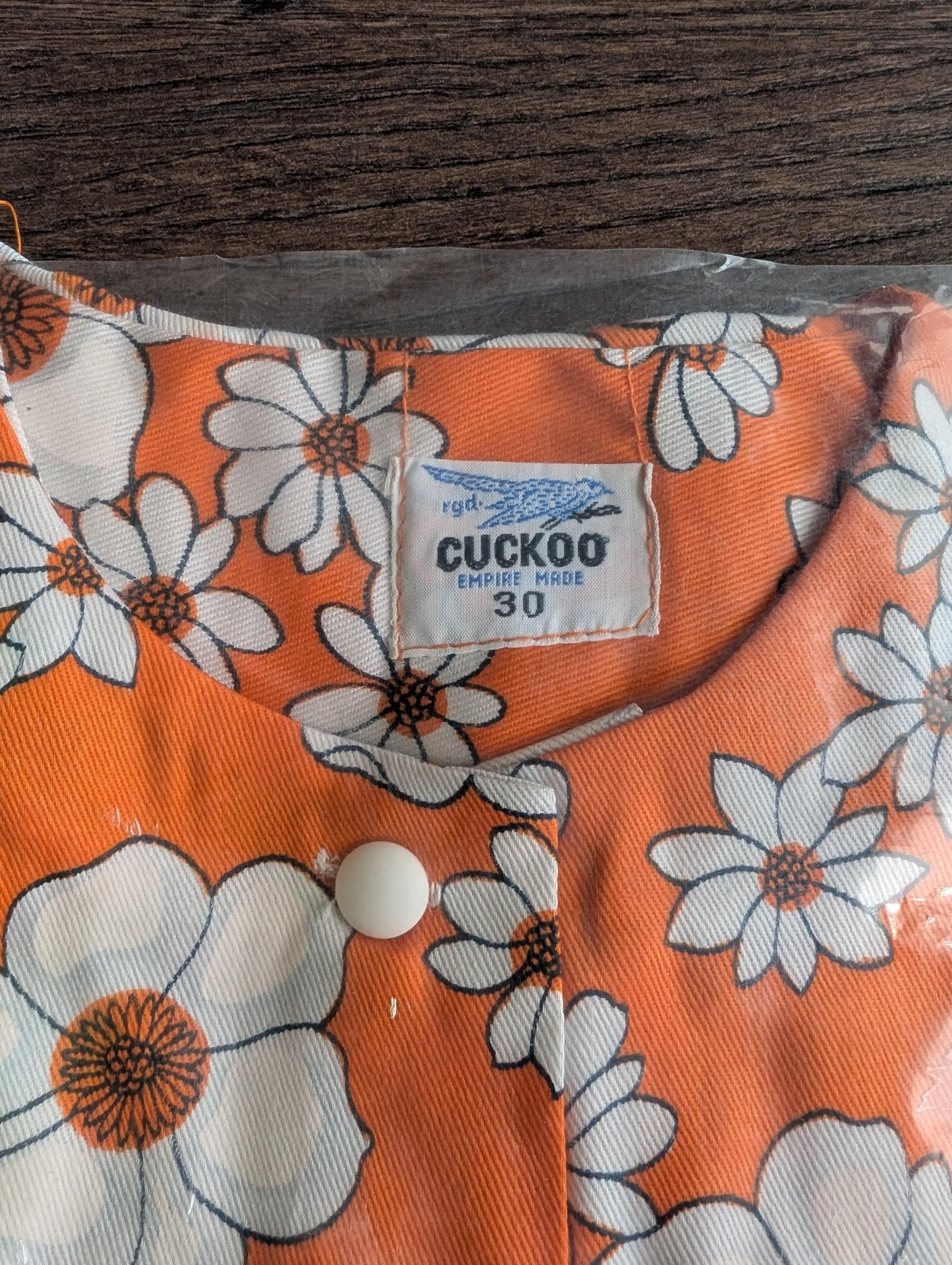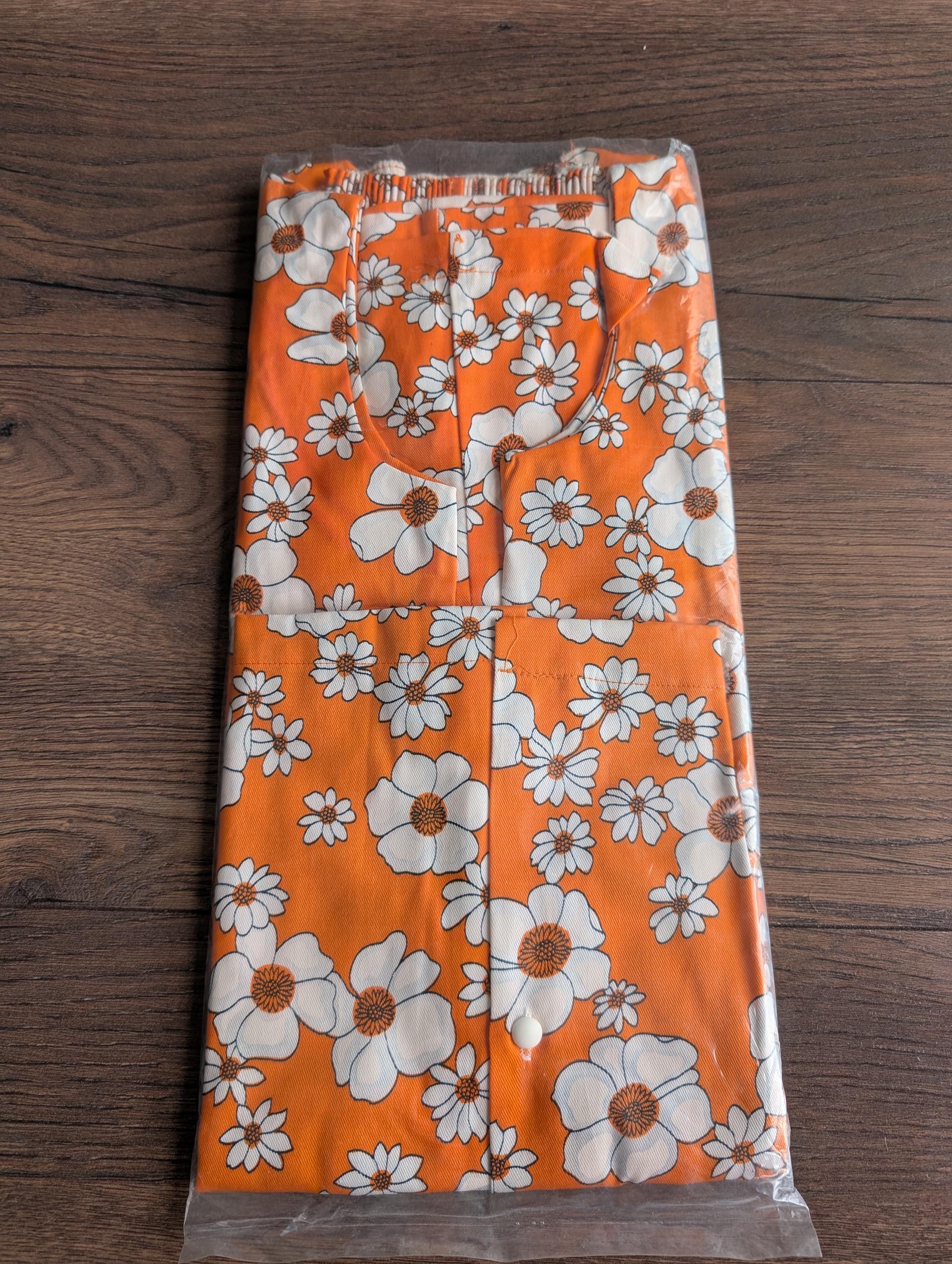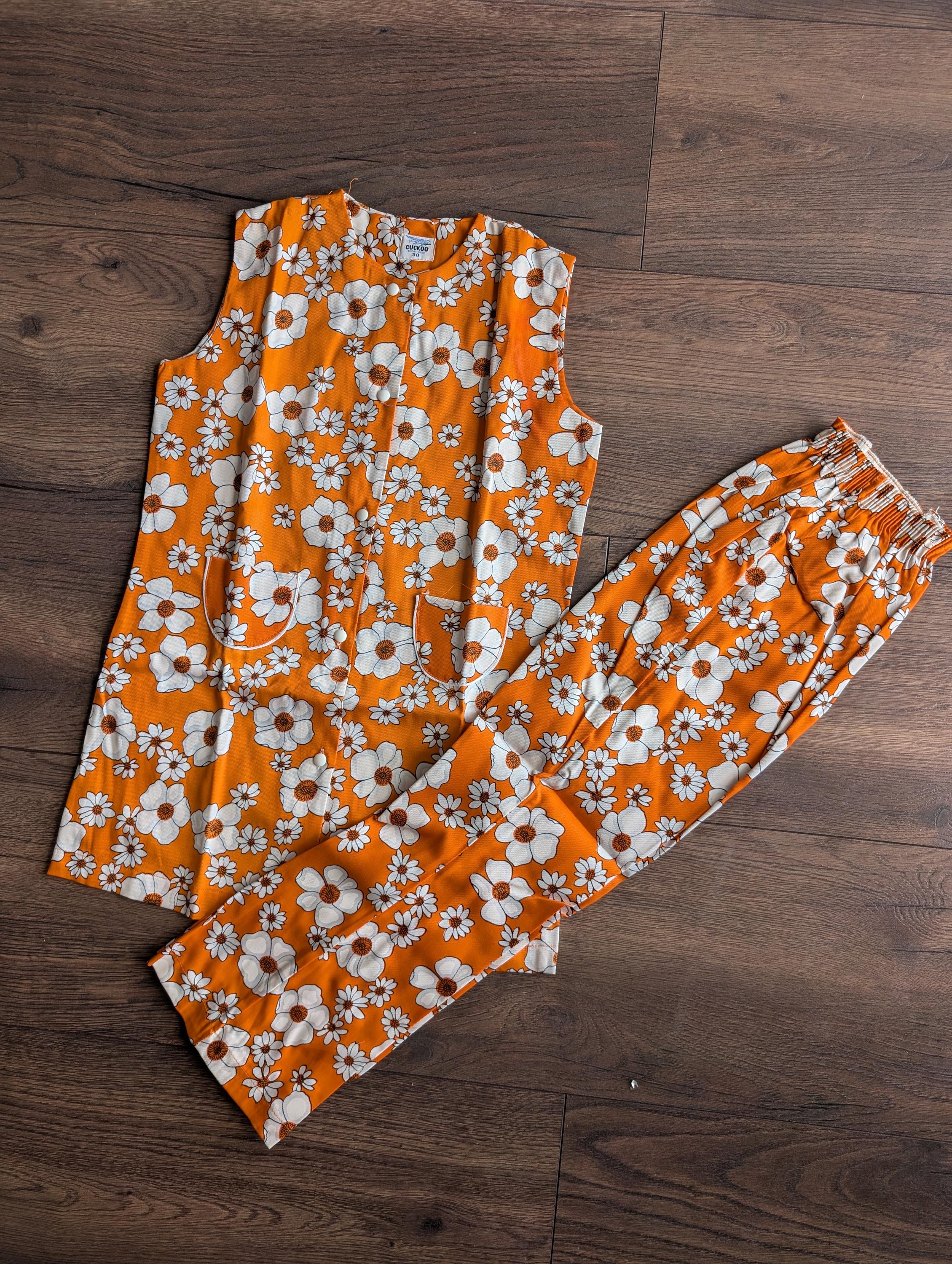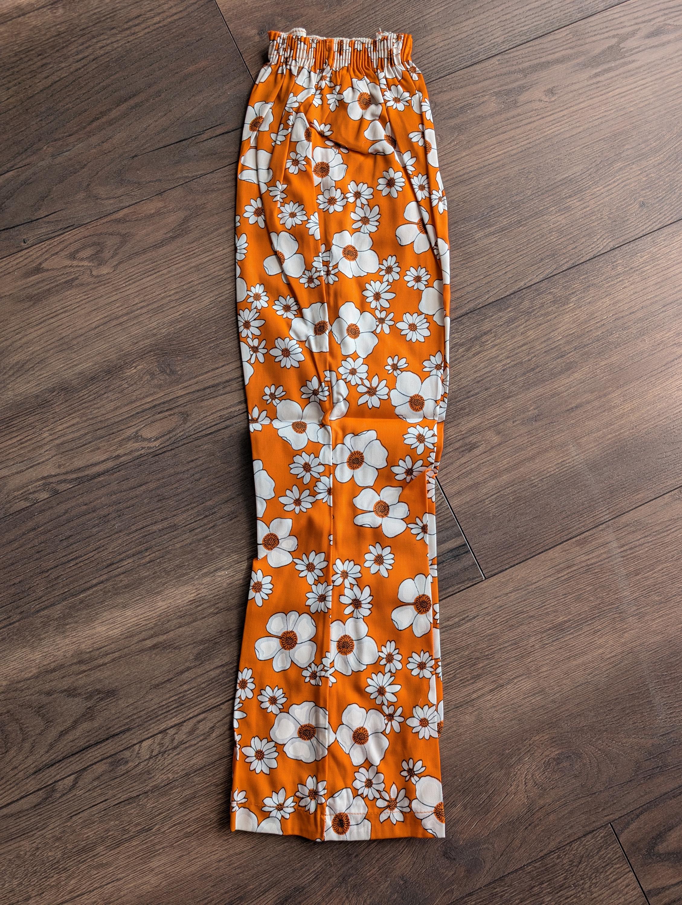 Deadstock 1970's Cuckoo Cotton Two Piece Top & Bell-bottoms Orange White Floral Size 30