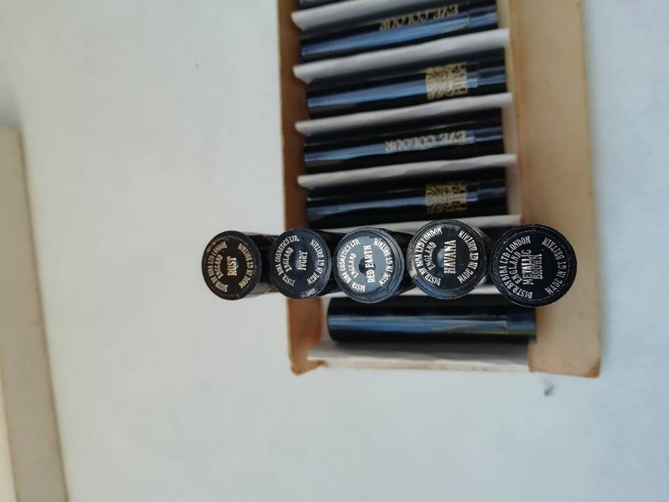 You lift the lid off and twist the bottom to reveal the eye stick. Its a deep brown colour. These seem hard to find as they are small so easily lost and used up!